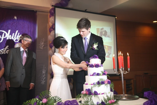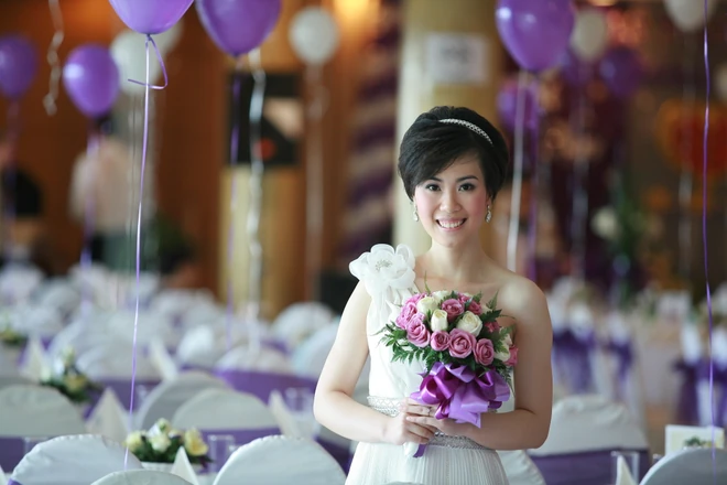 Our ceremony was neither traditionally Vietnamese nor Swedish, but rather something in between. Unlike in Sweden, the ceremony and dinner is in the same room, with the food already being on the tables before the guests arrive. Somewhat untypically for a Vietnamese wedding, we had a clear theme – purple. The florist did a great job!