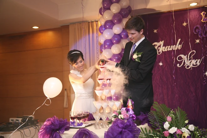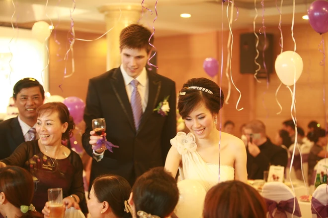 At this point one would normally offer the parents on both sides to drink wine, which we eventually did, but first we spliced in a bit of Swedish tradition – my father giving a speech. I hope to be able to post the transcript and Vietnamese translation of that speech later.